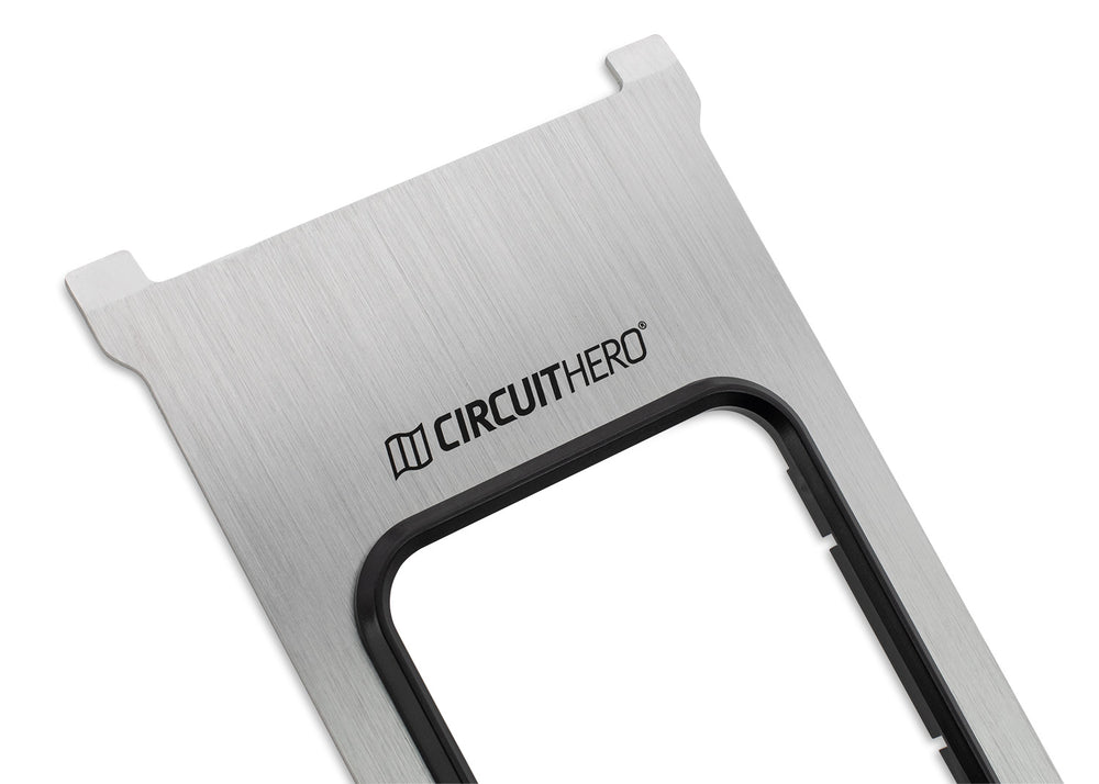 What's changed? We now offer 2 color options, brushed and black anodized finishes. Say goodbye to the trim that you had to cut to size. Say hello to the stunning plastic insert resting tight in the opening giving the plate a high end look and feel. Silk screened Circuit Hero logo is sitting nicely in the center of the panel just asking to be photographed!